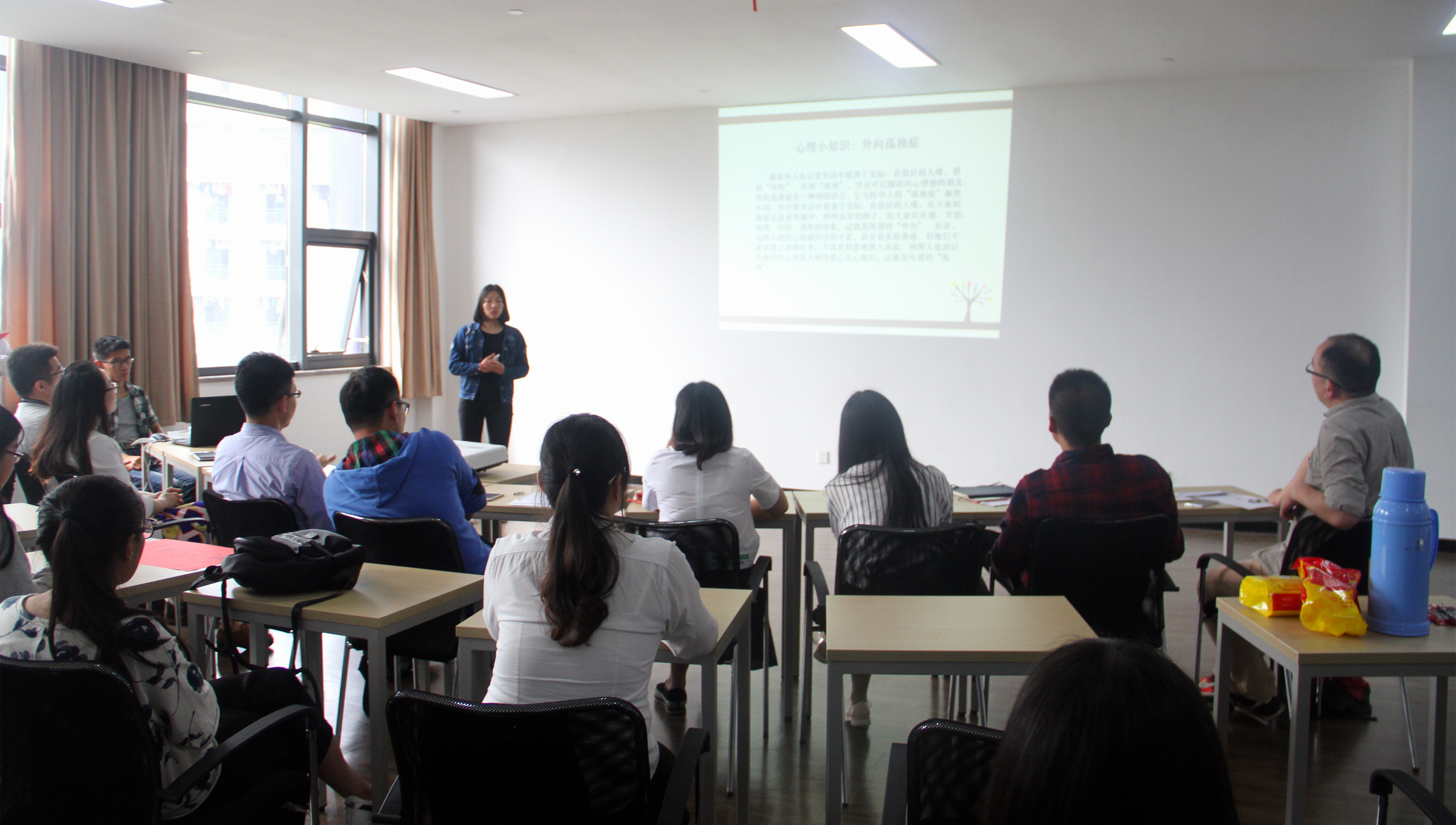 主题设计是开展心理班会的前提。主题心理班会更强调班级的内在交流和沟通,更突出“心灵成长”的目标,因此,很多班级活动开始前在班级做了深入的问卷调查,了解同学们的心灵成长需求;马斯洛层次需要理论、外向孤独症、埃里克森成长阶段理论等等枯燥的心理学理论被心理委员们用的活灵活现,展现了良好的专业素质;在班会设计过程中,心理委员积极寻求公司心理辅导站老师、班主任的指导,切实做到三个体现,即“体现心理学理论、体现班级需求、体现心理班会要求”。