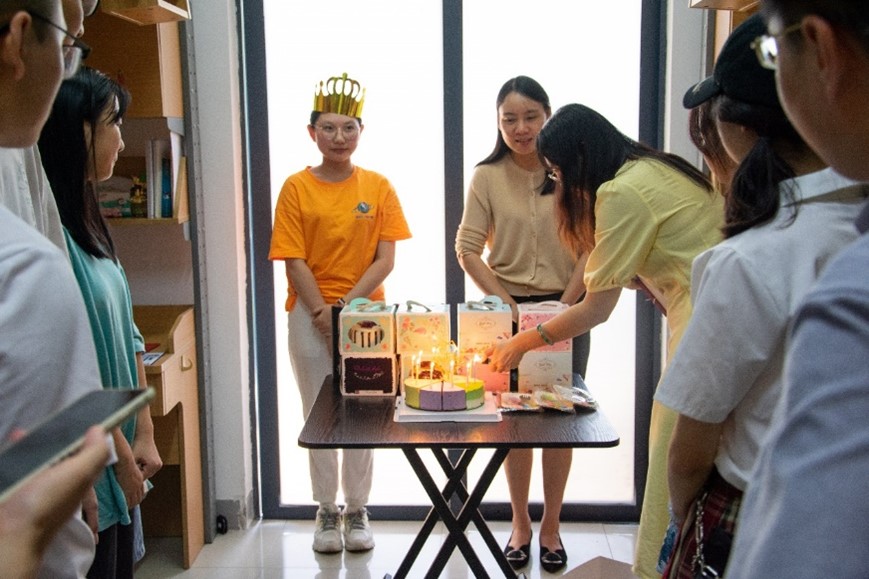 9月22日下午,副董事长阮叶萍走访了beat365官方登录迎新现场,并指导迎新和新生始业教育工作,随后深入走访了beat365官方登录新生寝室。在9A107寝室,阮叶萍副董事长和公司党委书记谢军为当天过生日的新生沈欣怡同学送上了生日祝福。走访期间,阮叶萍副董事长嘱咐同学们在即将到来的老员工涯里勤学多思、善问笃行,努力成长为有用之材。