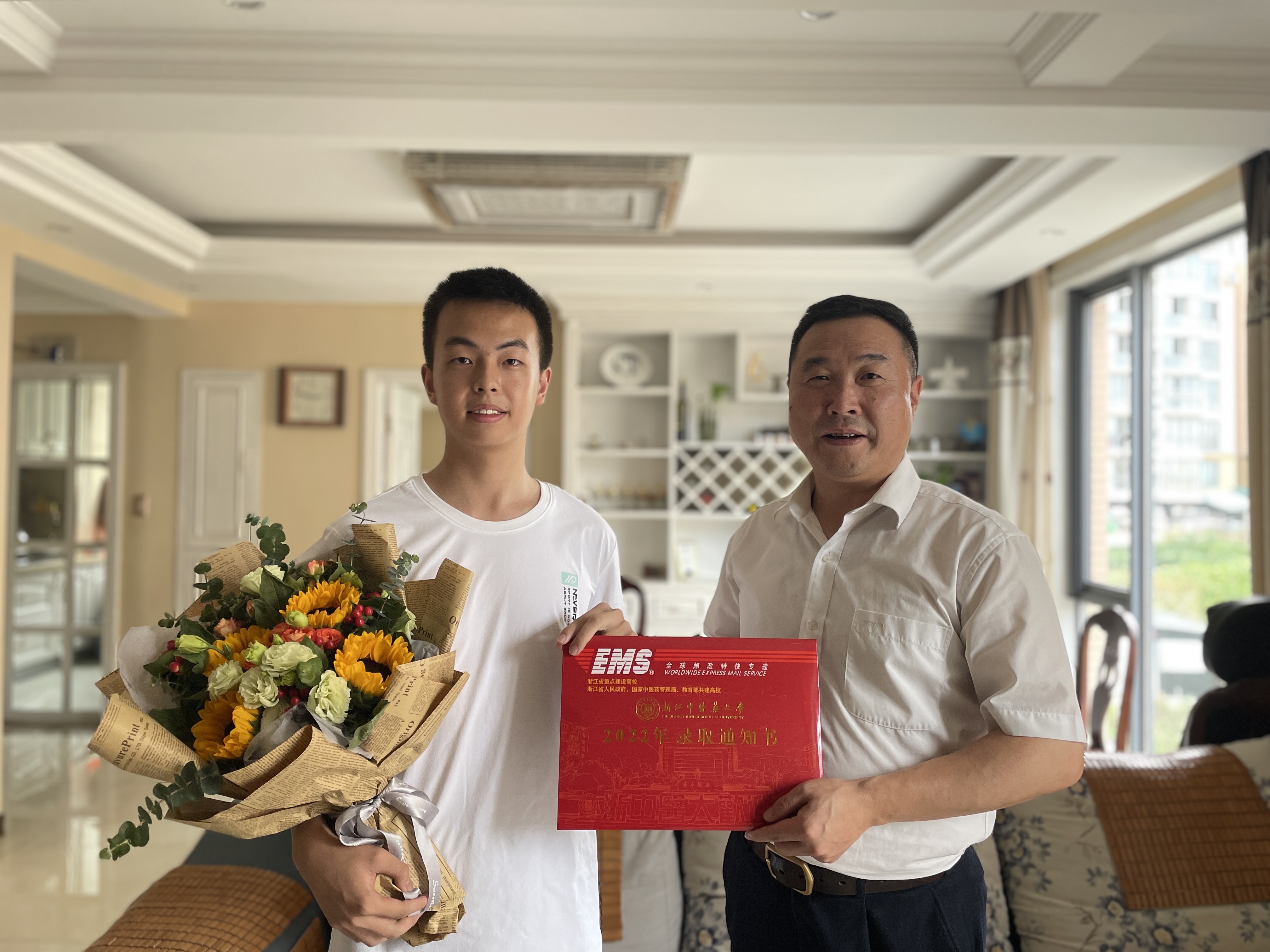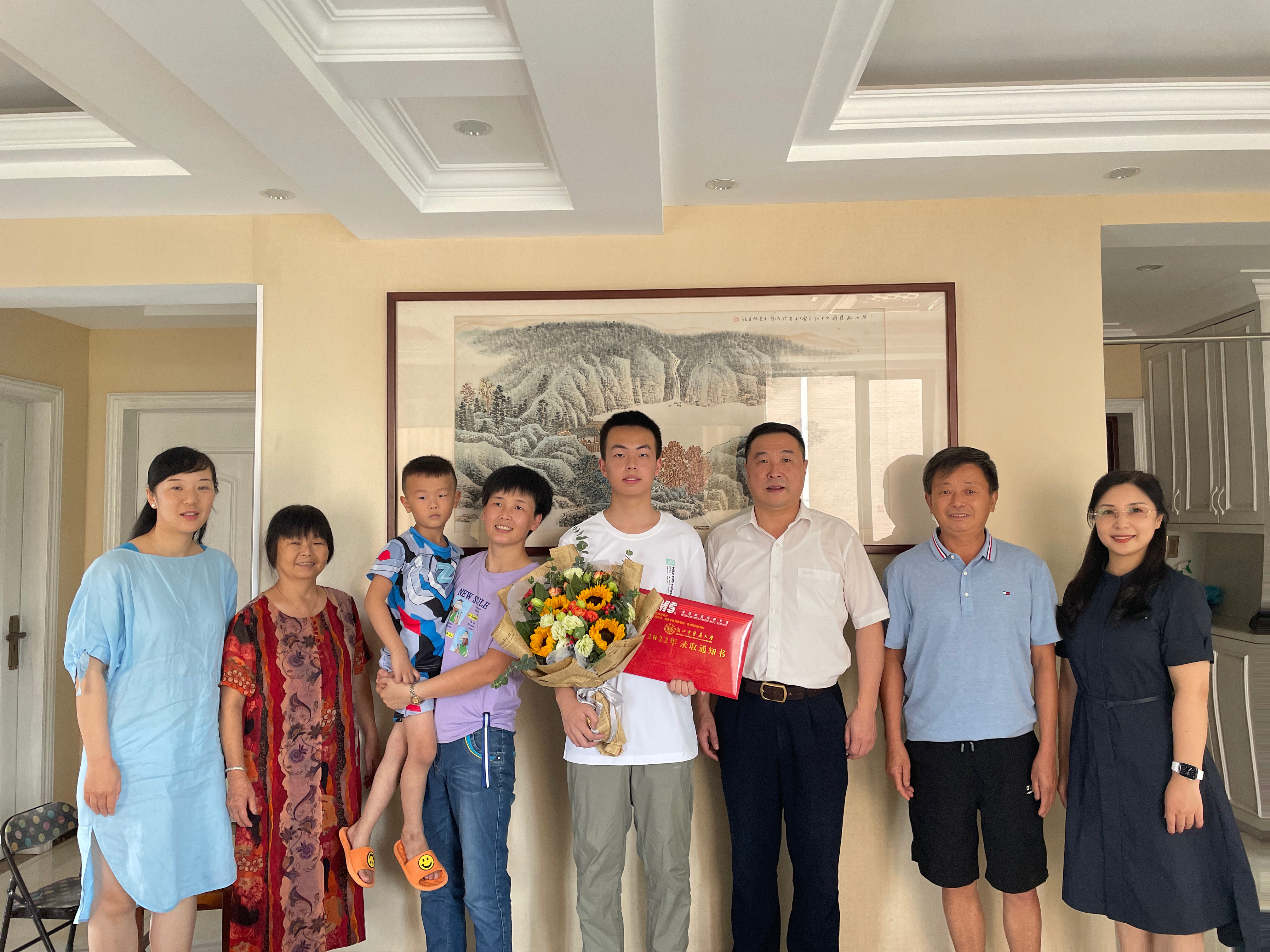7月22日下午,副董事长罗伟明在学工部副部长胡洁、beat365官方登录党委副书记蒋笑燕、党政办主任樊雅婷的陪同下专程赶到杭州市富阳区富春街道,将beat365官方登录的录取通知书送到2022级药学专业新生潘吴泽的手中。罗伟明副董事长向潘吴泽及其家长转达公司的关心与问候,也代表公司对潘同学加入beat365官方登录这个大家庭表示热烈欢迎。