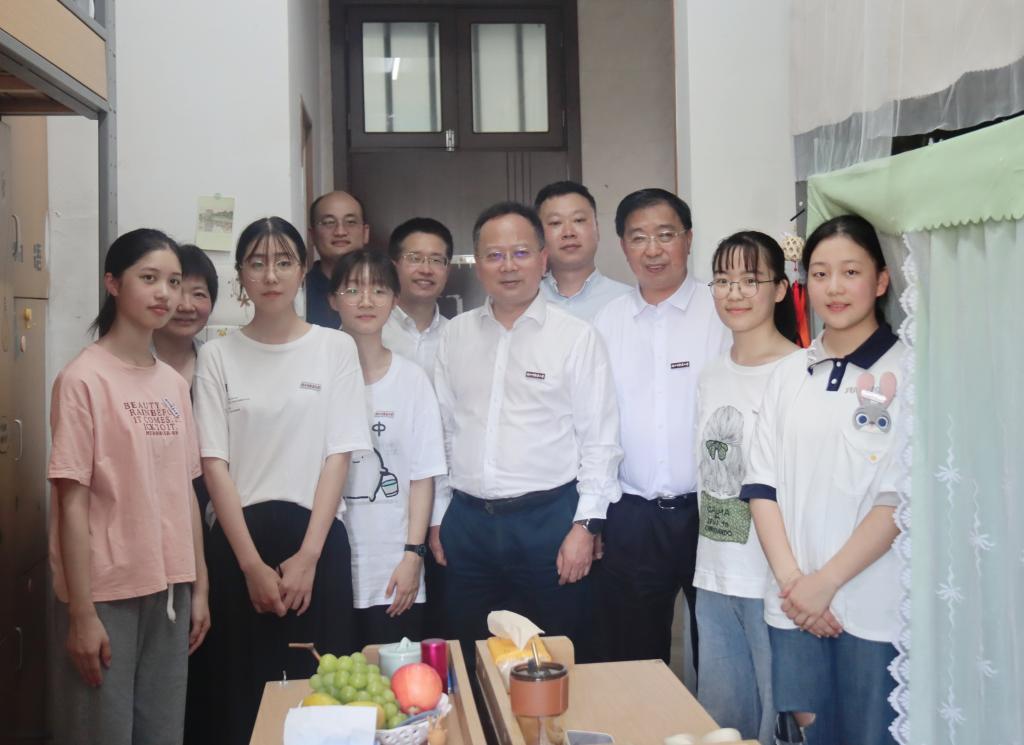 为了深入了解入学新生的生活适应状况,9月11日上午,董事长陈忠教授走访看望了beat365官方登录2023级新生寝室,公司党委委员、组织部部长黄爱军,beat365官方登录经理秦路平、党委书记谢军、副经理谷满仓陪同走访。