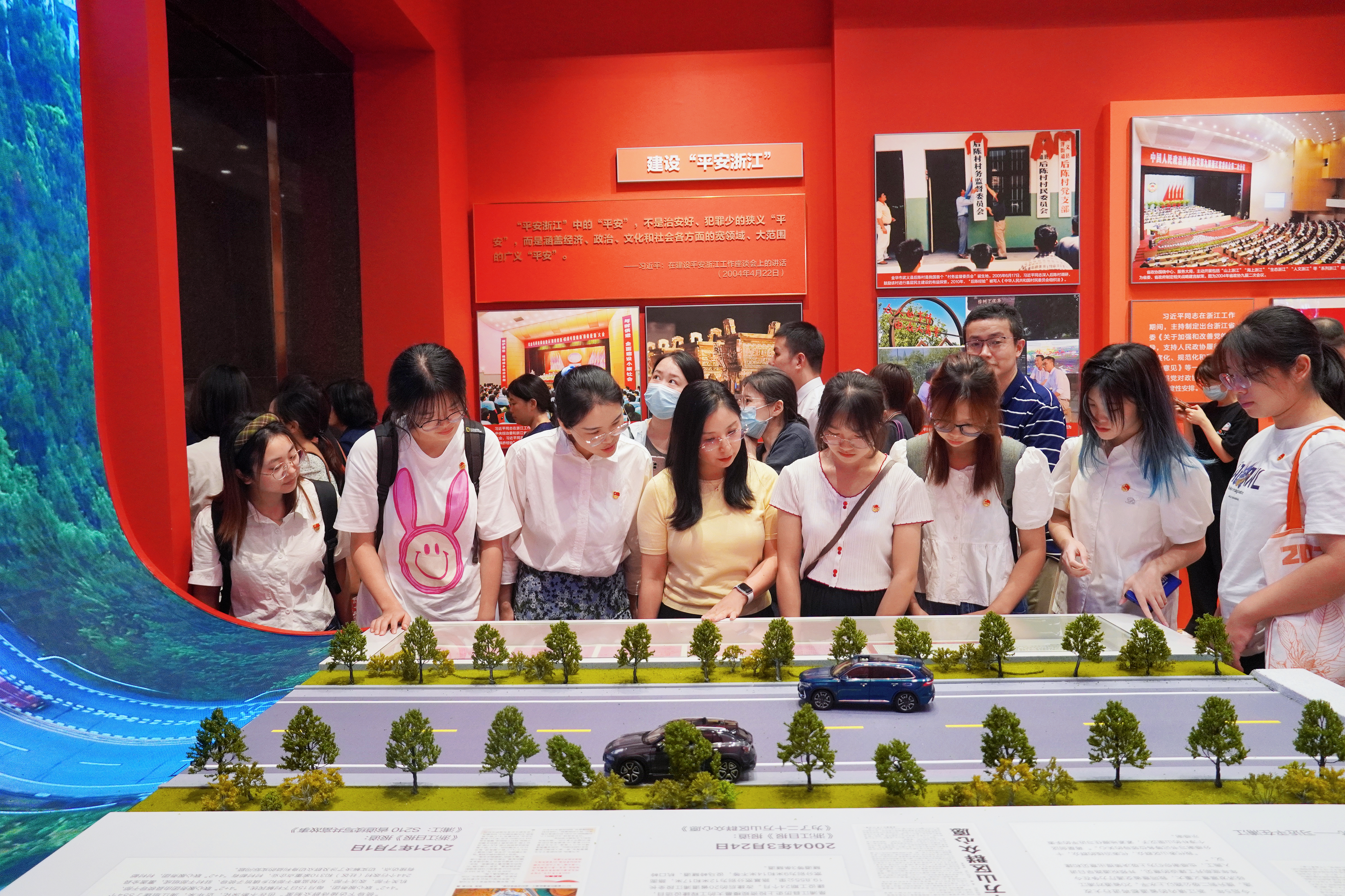 为进一步引导师生感悟“八八战略”的实践伟力,了解之江大地20年来发生的精彩蝶变,9月27日下午,beat365官方登录党委组织50余名党员师生代表赴浙江展览馆开展现场教学,参观大道之行——“八八战略”实施20周年大型主题展览。