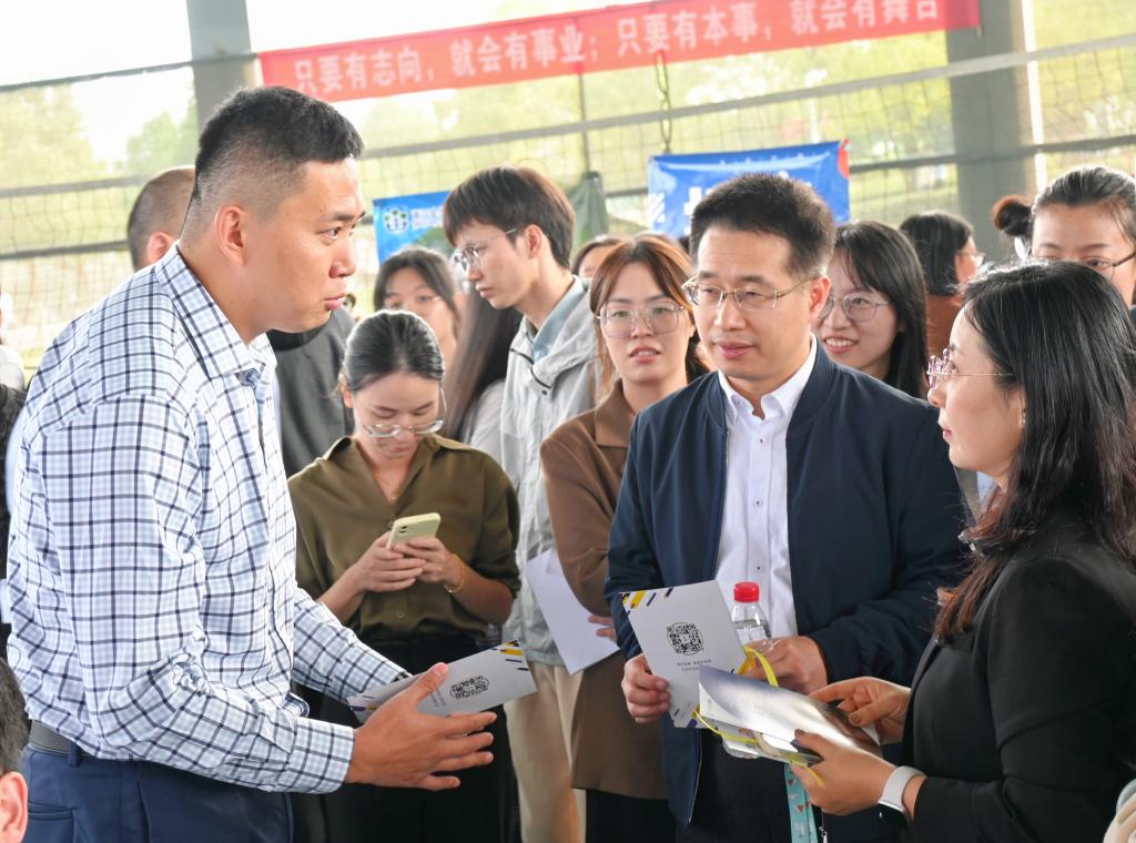 beat365官方登录党委书记谢军、副书记蒋笑燕、副经理谷满仓到招聘会现场与用人单位亲切交流,大力推动双方需求的精准对接,向部分企业推荐了毕业生。