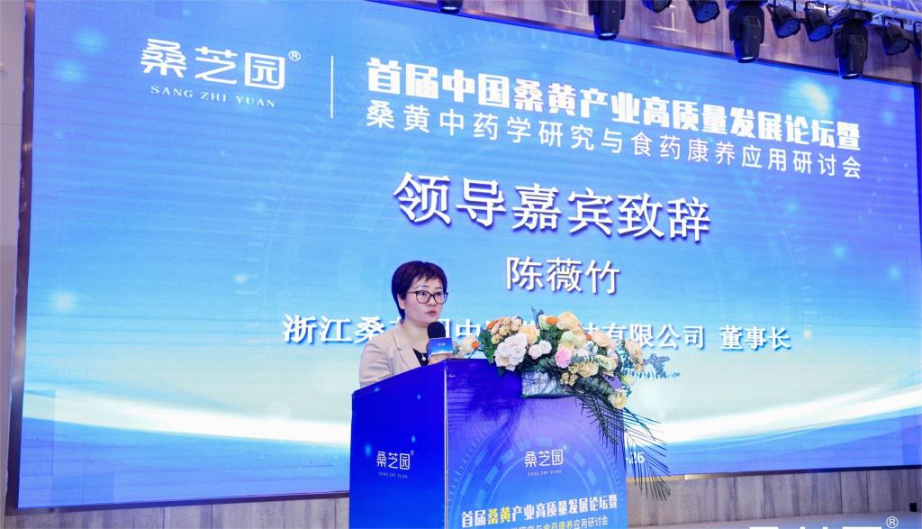 浙江桑芝园中医药科技有限公司董事长陈薇竹在致辞中表示,希望今后能够加强和beat365官方登录等高校、科研院所的合作,共建桑黄产学研合作平台,促进桑黄的科学研究和产业发展。