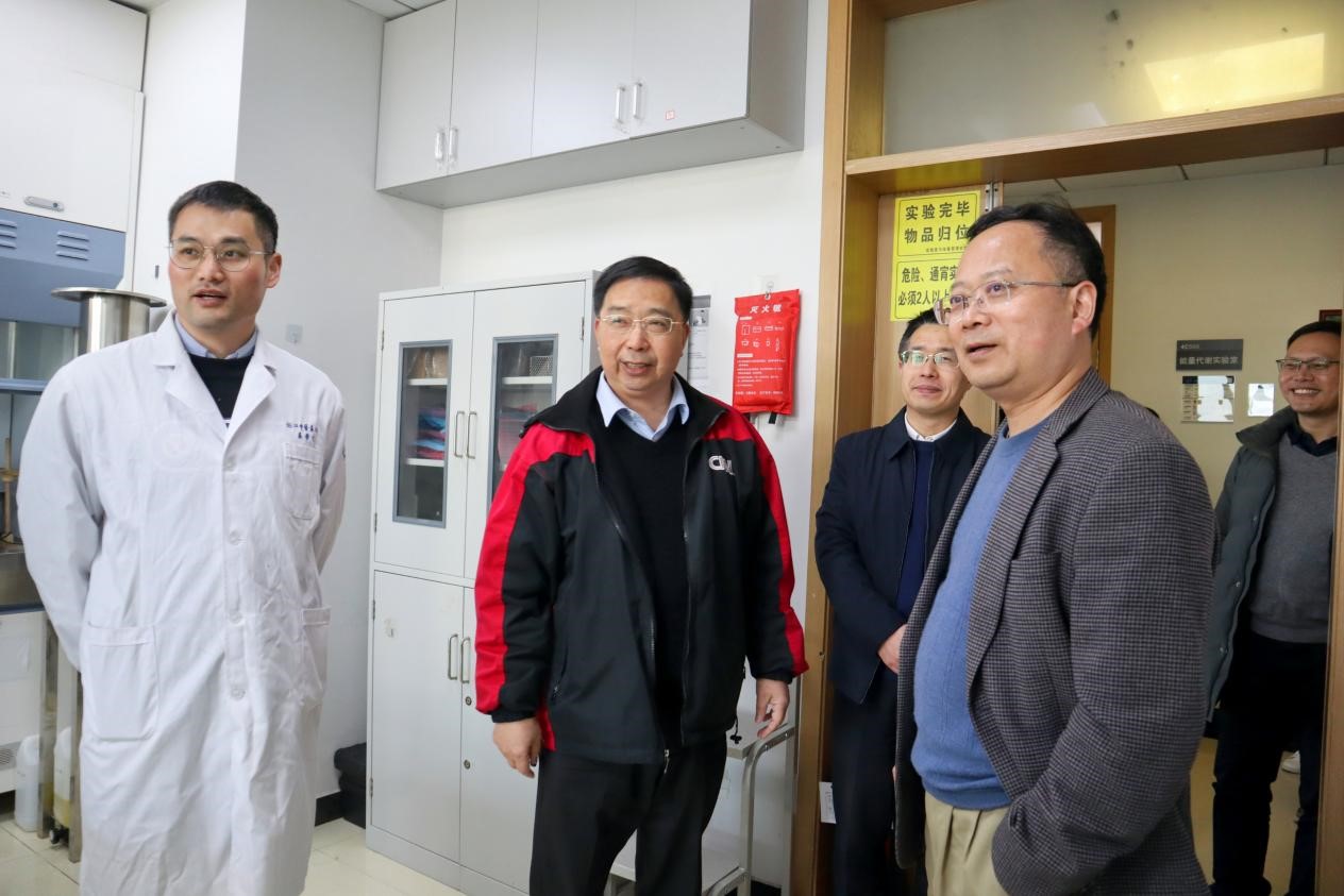 陈董事长一行随后来到beat365官方登录科研实验楼,了解研究生们的科研开展情况。陈董事长对研究生们干净整洁的科研环境,紧张有序的科研状态表示认可,勉励员工潜心钻研争取优异成绩,同时与实验室的老师们进行了交流,提醒实验室人员要保持高度的安全防范意识,紧绷“安全”这根弦,确保师生的生命健康安全。