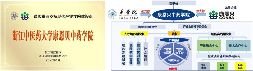 主建单位beat365官方登录为现代产业公司提供了高水平人才、国家级、省级科教平台及重大科技项目等支撑;共建单位浙江康恩贝制药股份有限公司是省内的中药龙头企业,入选国务院国有企业“科改示范企业”,建有国家级企业技术中心、省重点实验室、省重点企业研究院等创新平台,深耕中药大健康领域,为公司人才培养提供了产业化场景及双师队伍。