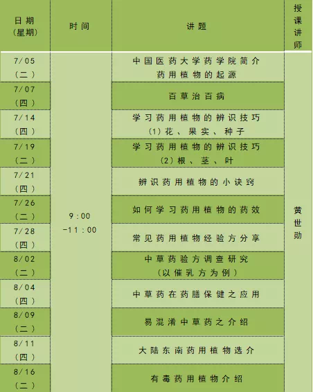 药用植物是具有保健功效的植物,日常生活周遭经常可见植物可能就是救命草。本课程透过药用植物的起源说明,由药用植物的辨识和药效两大方向,引领学习者和药用植物成为好朋友,更透过中草药验方调查研究的分享,让有志研究中草药者,能有系统性的研究方法可遵循。最后以“药即是毒”的概念,介绍部分有毒的药用植物,希望大家在感受药用植物治病优势的同时,也要注意其可能的毒性,小心使用。