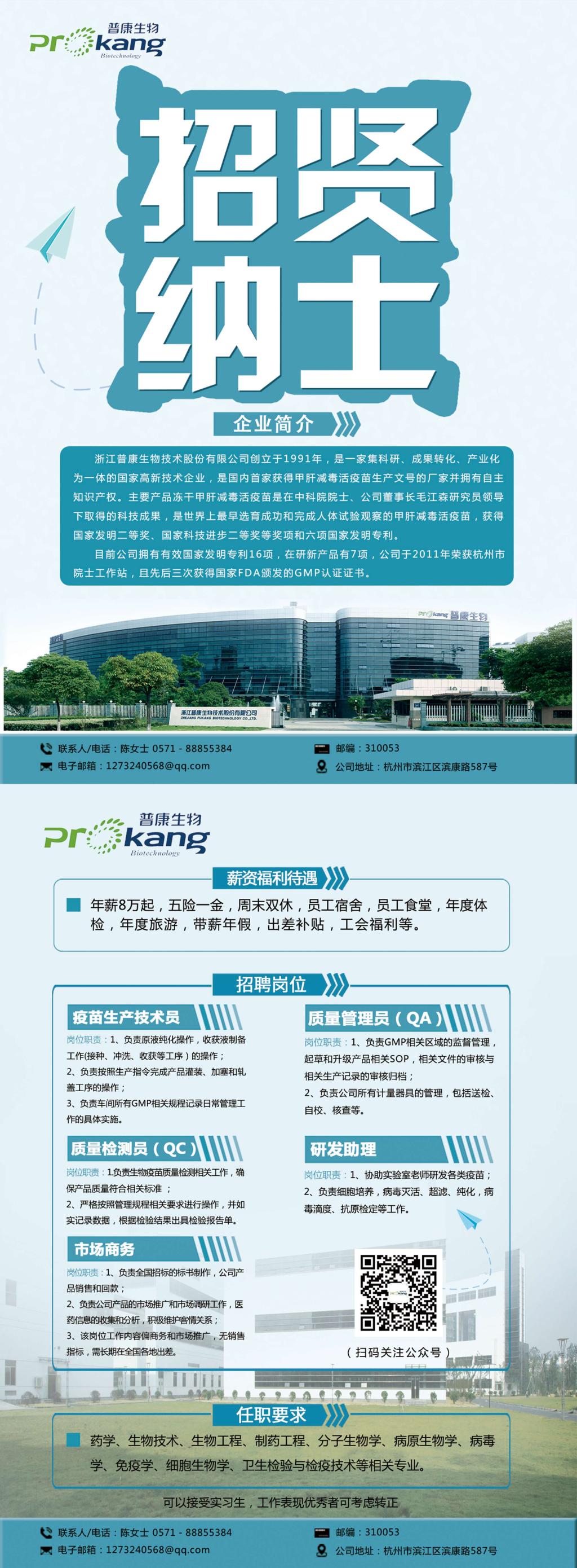 浙江普康生物技术股份有限公司招聘