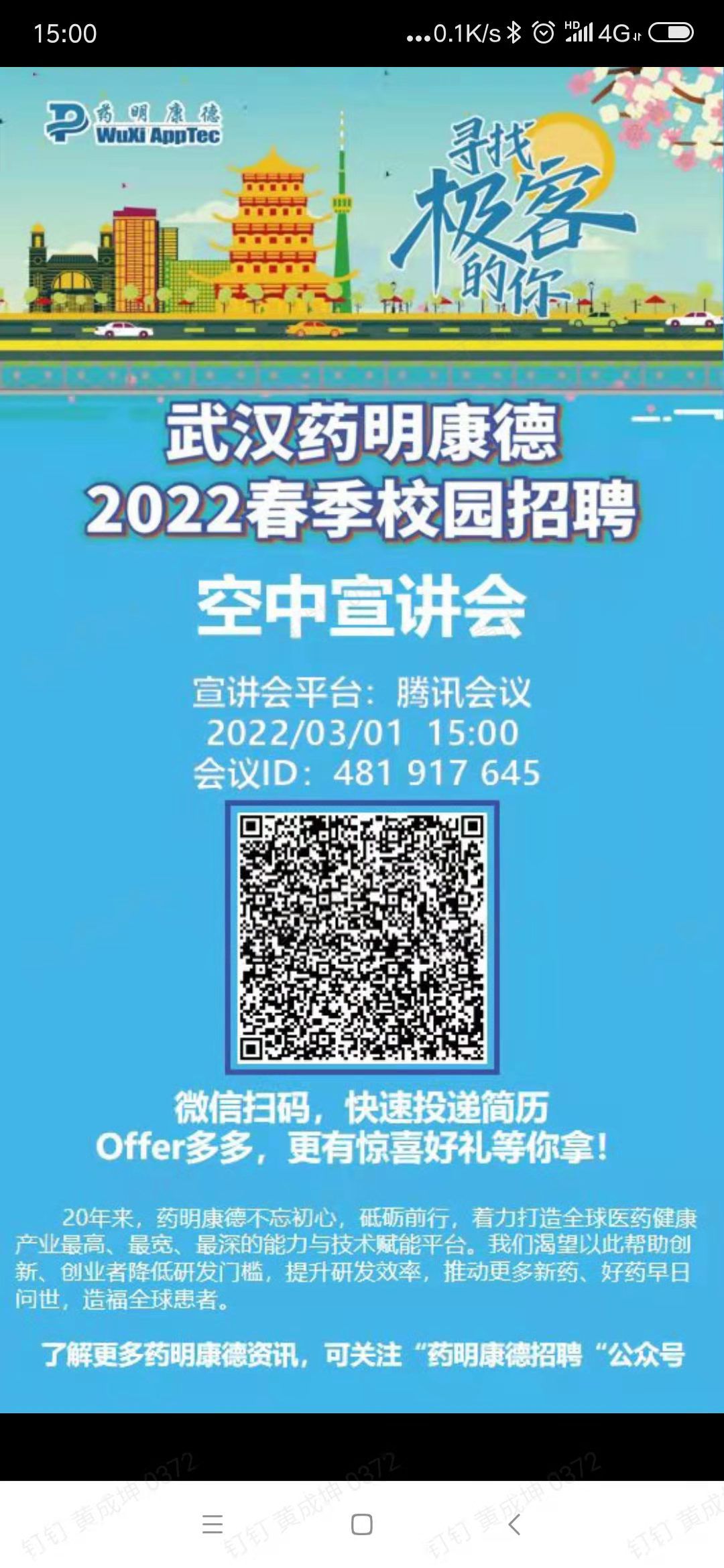 武汉药明康德3月1日空中宣讲会