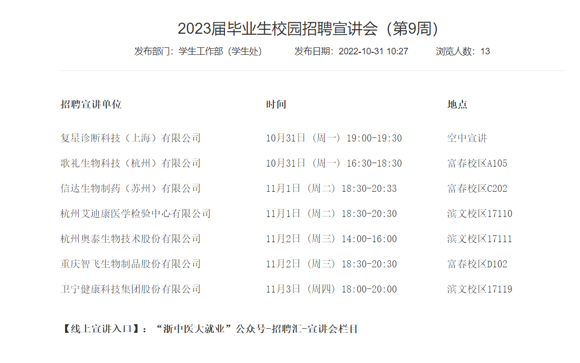 2023届毕业生校园招聘宣讲会(第9周)【校就业办】