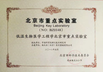 公司设有北京市低温生物医学工程学重点实验室、博士后科研工作站,拥有国内外知识产权150余项,获得了专精特新“小巨人”企业、中关村首台(套)重大技术装备试验、北京市新技术新产品、青年文明号等殊荣。