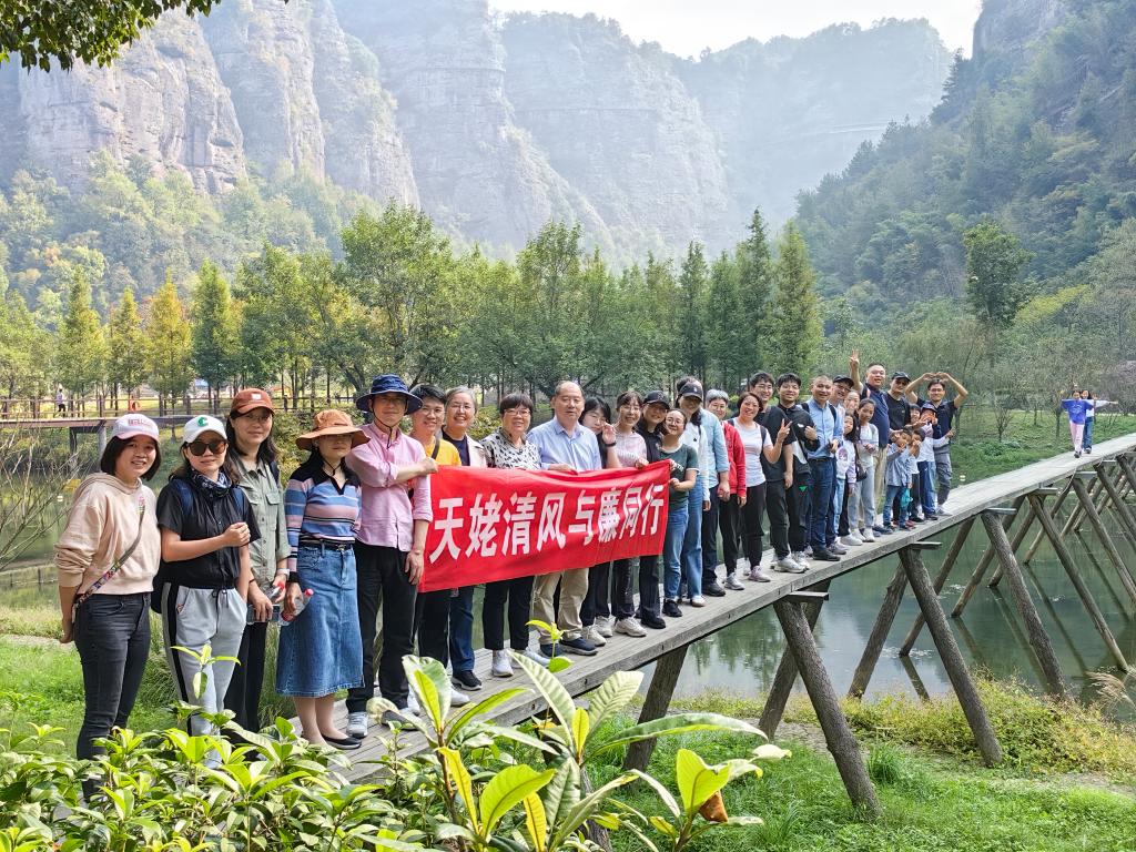 下午,会员们前往穿岩十九峰清廉教育基地考察。近年来,新昌县依托丹霞地貌和千丈幽谷的山水优势,挖掘传统文化中的廉洁因子,与旅游资源进行深度融合,提出了“天姥清风”文化品牌,让游客在饱览绿水青山中感悟廉洁文化。
