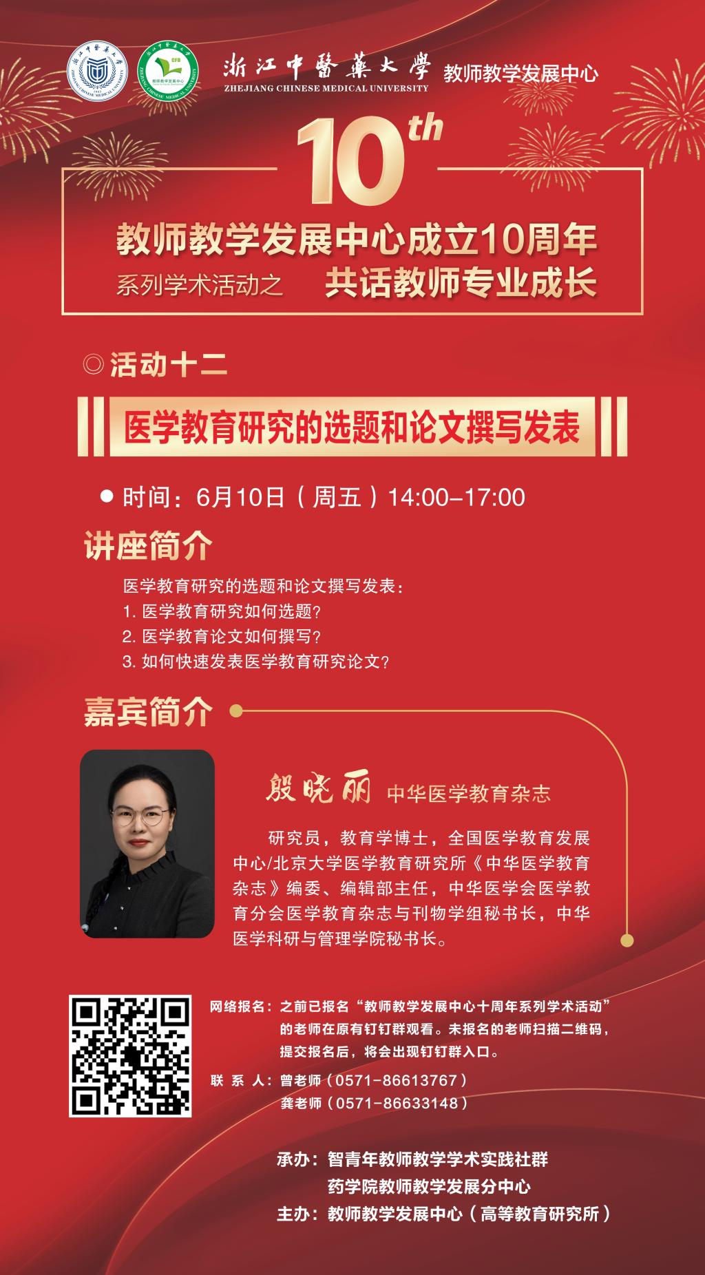 各位老师,恰逢夏意渐浓、万物初盈之时,热烈欢迎您参加由beat365官方登录教师发展中心主办,beat365官方登录教发中心和青年教师教学学术实践社群承办的2022教师教学发展中心成立10周年系列学术活动之医学教育研究的选题和论文撰写发表!